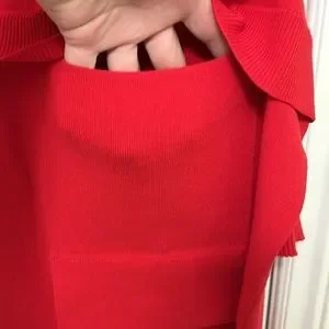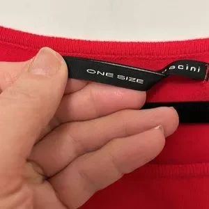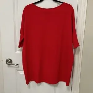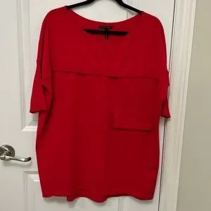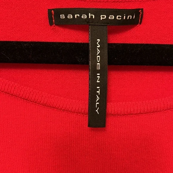 Vibrant red tunic by Sarah Pacini. Elegant and stylish design.