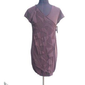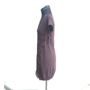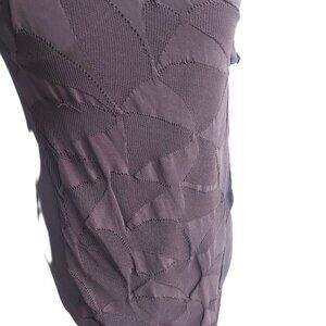 This piece by Sarah Pacini is offer in a luscious milk chocolate. It can be worn as a micro mini dress or as a tunic. It looks fabulous worn sleeveless over a white tank with white shorts or skirts in the warmer months or layered over black in the cooler months as shown in the last photo. It has a textured front panel that is sheer and solid which evident at the neckline when worn and it has stretch which allows it to enhance the shape of the body. I had removed the size tag as it showed through the fabric a little, so please refer to the measurements. They are: PTP 16 inches (40.64 cm) with a 2 inch (5.17 cm) stretch throughout the garment available, waist 16 inches (40.64 cm), hip 18 inches (45.72 cm), shoulder to shoulder 14 inches (35.56 cm), length 31.5 inches (80.01 cm). A versatile piece that travels well in the fashion colour of the season.