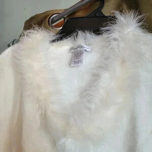 Sarah Spencer NWOT Creamy White Short Sleeve Sweater trimmed with Rabbit Hair