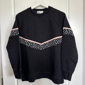 This trendy black hoodie features a striking chevron design with pink accents, offering a modern twist to a classic style. The boxy fit and comfortable fabric make it perfect for casual outings. Its long sleeves and cozy hood provide warmth and style in equal measure.