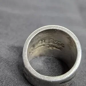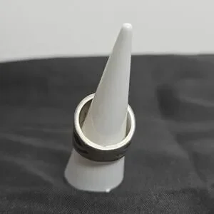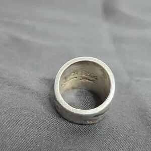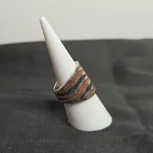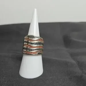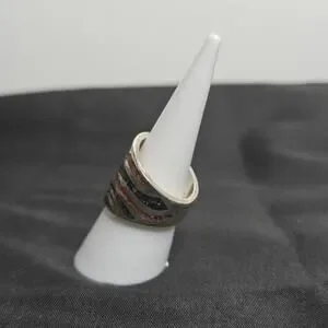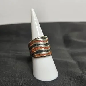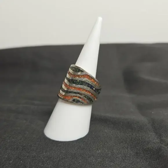 Thick silver band with wavy design of mosaic gems. Size 6