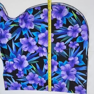 Excellent pre-owned condition, sarong bach wrap with a beautiful tropical purple and blue floral print on black made with a quality stretch and drapy material.