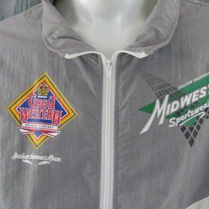Up for sale is a vintage Saskatchewan Roughriders jacket by Midwest Sportswear. The jacket is a colour block jacket with a grey body, green sleeves and white accents. The front of the jacket has the Great Western Brewery and Midwest Sportswear logos screened on. The back of the jacket has a large Saskatchewan Roughriders helmet screened on with Saskatchewan Roughriders underneath. What an amazing vintage jacket do not miss out on it.