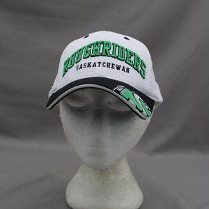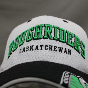 Up for sale is a vintage Saskatchewan Roughriders hat by Puma. It has a white base colour with a black brim. The front of the hat has Roughriders stitched in black and green. The left side of the brim has the Riders logo stitched in. What a great vintage hat do not miss out on it.