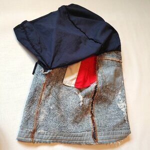 100% cotton. Lining is 65% polyester, 35% cotton. Embellishments are 100% polyester.