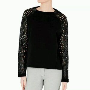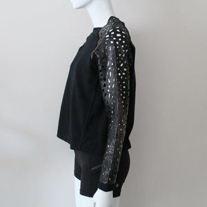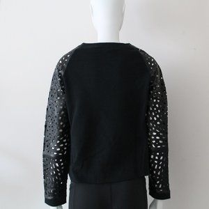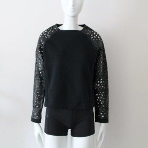 Sass & Bide Perforated Leather Sleeves Top Black Size XXS