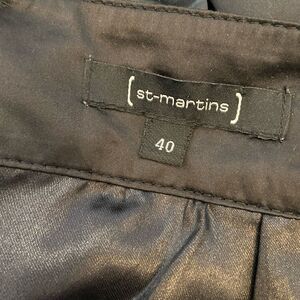 ST-MARTINS Black&Green Satin Patterned Pleated High Waist Knee Length Skirt 40