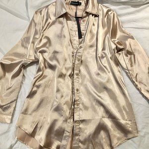 Brand new with tags, champagne satin button up shirt from PrettyLittleThing. Super cute, just never reached for it so it sat in my closet.