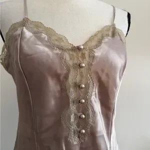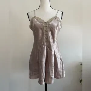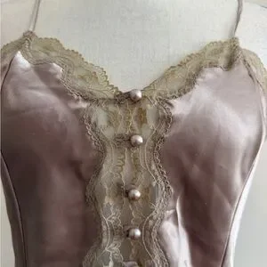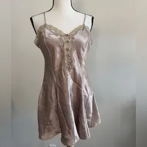 Indulge in luxury with this elegant satin chemise, featuring delicate lace trim and a soft, silky feel. Perfect for a comfortable night's sleep or a romantic evening.