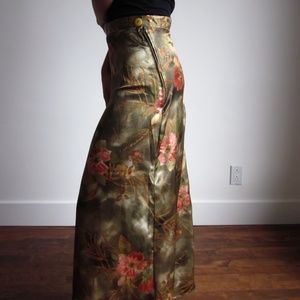 Satin Olive Green With Flowers Maxi Skirt