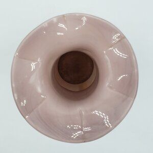 -EUC with no signs of chips, cracks or scratches - water stain in bottom; small manufacturer raised glass flaw on neck which does not impede the look or function of the vase; wonderful swirls and spots of many different colours accent the lovely satin pink or violet background