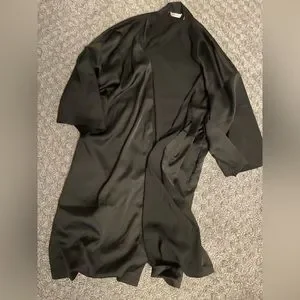 Black satin robe with tie