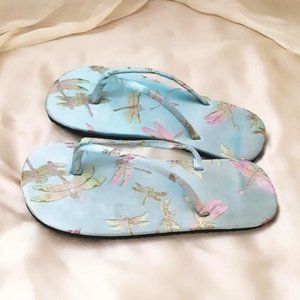 Satin SKY BLUE Woven Dragonfly Open-Toe Flip Flops