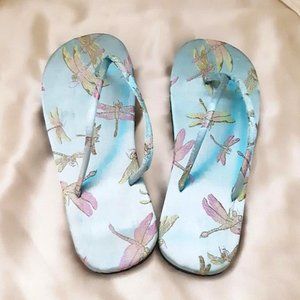 Handmade beautiful SKY BLUE Satin woven Dragonfly girls women’s Flip Flops Open-Toe Thongs Slippers, non-slip rubber soles