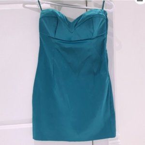 Satin Turquoise Sweetheart Mini Strapless Dress