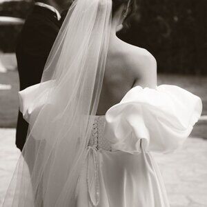 Used only for few hours, dry cleaned. Veil will be included as gift.