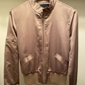 Forever21 - pale gold/bronze in colour - satin-like material bomber- little signs of wear - very versatile! Can be worn with jeans or over a dress, dress it up or down, works so well in many ways :)