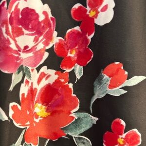 Floral satin nightie with lace trim. Has double spaghetti straps that are not adjustable. Like new.