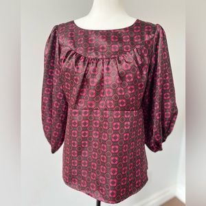 Bright pink/brown combo geometric print. Balloon sleeve Straight fitted waist. EUC Bold and flattering!