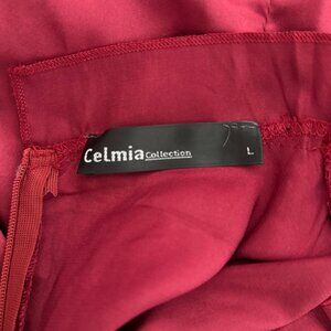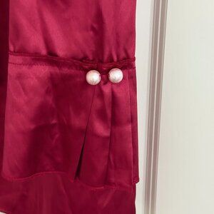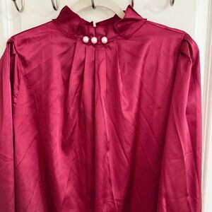 Satiny Sleek Blouse with Pearl Mock Neck Long Sleeves Size Large