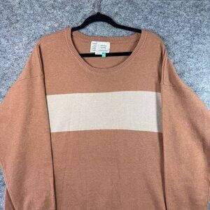 Saturday Sunday by Anthropologie Tan Cream Striped Relaxed Fit Sweater Size 2X