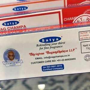 Each 15 gram pack contains around 12 to 15 incense sticks. The best Satya Sai baba nag champa incense from the Srinivas sugandhalaya factory.