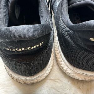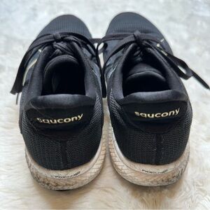 Black in colour with white and black design on the sides and Saucony branding on the back.