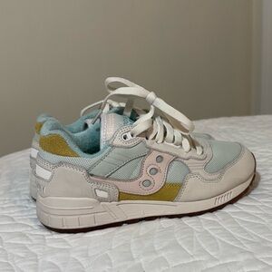 Saucony Green and Pink Sneakers Retro-Inspired Design Shadow 5000
