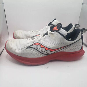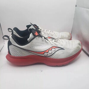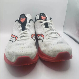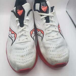 Extremely lightweight Saucony athletic shoes, great for long distance running. White upper with red accents. Very comfortable fit, used lightly, at indoor gym.