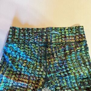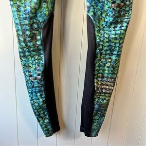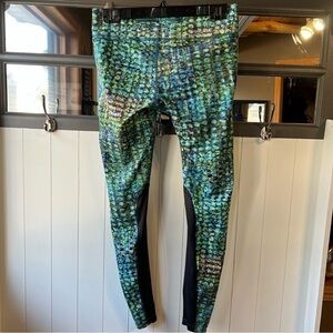 These modern multi coloured pants are complete with a reflective trim along the sides for safety during outside activities. The fitted design and supportive construction accents your shape while being a frictionless and durable addition to your workout wardrobe. Key pocket in waistband great when going to the gym.