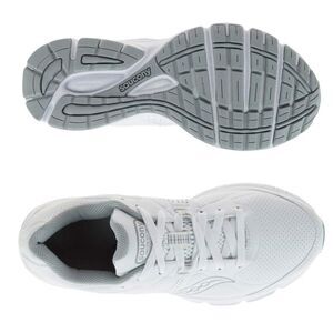 These Saucony Grid Momentum Walker shoes offer both comfort and durability, making them ideal for walking and everyday wear. Crafted with a full leather upper in white and grey, they feature a lace-up design for a secure fit and a non-slip outsole for reliable traction. Perfect for those seeking functional yet stylish footwear.