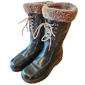Saute Mouton Colombe Women's Leather Zipper Moto Biker Fall Boots Black Size 36.