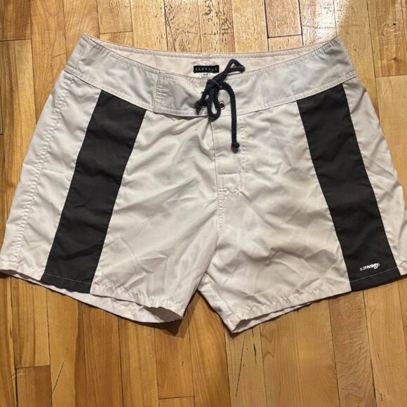 Get ready for summer with these stylish Sauvage swim shorts! Featuring a light beige color with bold black side panels, they're perfect for beach days or pool parties.