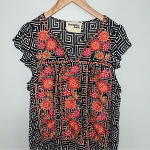 Savanna Jane Dress Women’s Size Large Black White Embroidered Floral Rayon