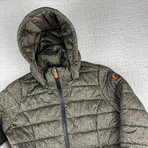 Save The Duck Womens Ultra Light Jacket Dark Green Puffer Size 2 Hooded