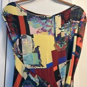 Fly. Dropped one shoulder, ptp 17.5” Assimetrical bottom L: sides 38”, 36”, back 39”) Approximately