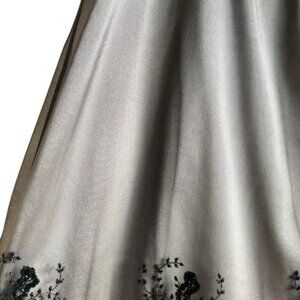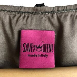 A strikingly elegant piece by Save the Queen! made in Italy, this sleeveless satin dress features a smooth gray body finished with bold black lace embroidery at the hem. The fluid silhouette drapes beautifully, making it a flattering choice for evening events, holiday parties, or when you simply want to feel like royalty. With a unique fabric blend and dramatic contrast trim, this dress offers a luxurious European feel with artistic flair. Treat yourself to designer craftsmanship—at a fraction of the original cost.