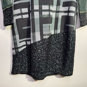 Save the Queen Geometric Sheer Sleeves Sequin Accents Shift Dress Medium NWT