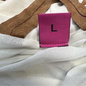 Size large on label but even though this is super stretchy I would say it fits smaller .