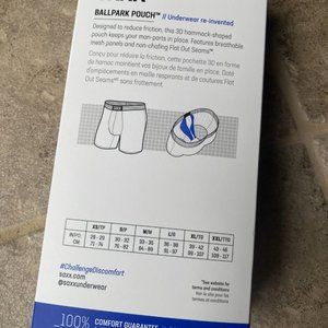 Ultra Super Soft boxer brief design by Saxx with BallPark Pouch. Relaxed fit. Never worn. Naturally breathable and lightweight. Men's Size Large (recommended by Saxx for waist size 36-38).