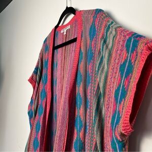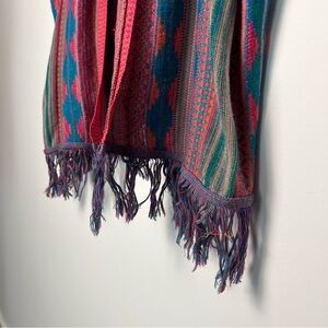 Embrace a bohemian vibe with this Say What? shrug, featuring a playful fringe detail at the hem. The vibrant pink and blue hues create a striking look, perfect for layering over any outfit. Its lightweight, drapey texture ensures comfort and style all day long.