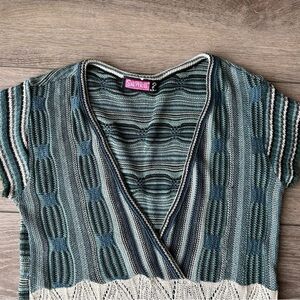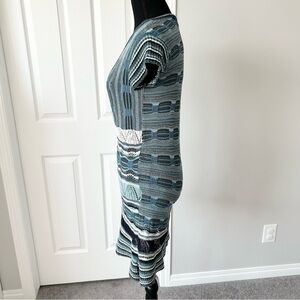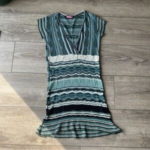 Say What Striped Knitted Faux Wrap Ruffle Hem Dress