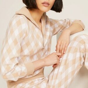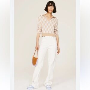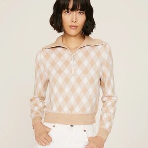 Featuring a classic neutral plaid print, this long sleeve sweater has a quarter-zip neckline and a cropped silhouette perfect for pairing with high-waisted trousers or jeans.