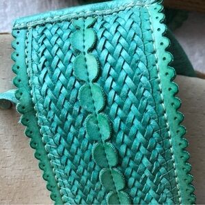 Sbicca hand made, slide on thong sandals with small wedge sole. Green. Size 10.