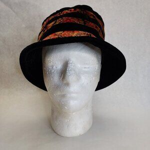 Scala Collezione Bucket Hat Women's Black Floral Stripe Velvet Velour Cloche O/S