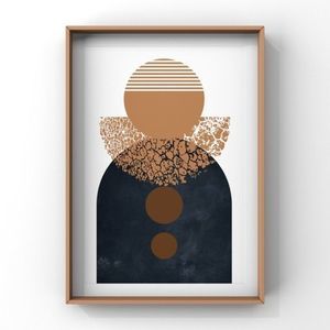 Scandinavian modern boho abstract art print. Rich blue with neutral browns and tan color and lot of textures and arch round shapes. This contemporary art sure will elevate aesthetic in any room. Whether it’s minimalist boho style you are after for or japandi Mid century modern design. This is 8.5”x11” would fit in 8x10 matte. Will print on matte finish art paper. Check my other art here or on IG: Triad_art_design. Bundle with other items to save on shipping. Open to reasonable offers. Great gift