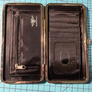 Scar wallet. Has been used but is in good condition. The wallet has a few minor marks on it that can be seen in the pictures. The closure works perfectly.
