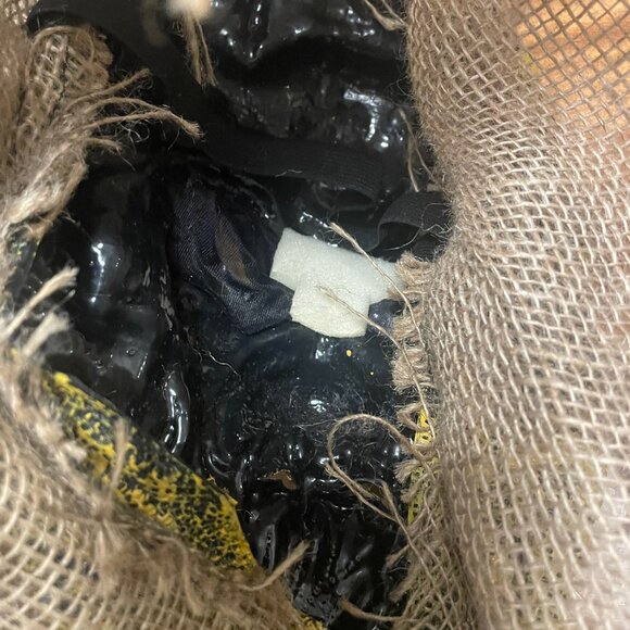 Scarecrow Halloween Mask Burlap Costume with Gloves Rope. Great condition, this could possibly be a handmade Mask, I'm not exaclty sure. I don't see any identifying marks. My husband is modeling it, so I would say this is for an adult or large teen.