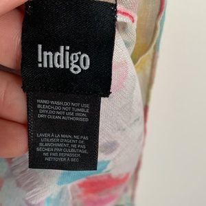 Beautiful multi coloured blanket scarf made by Indigo. Never worn. Measures approximately 37 by 82 inches.