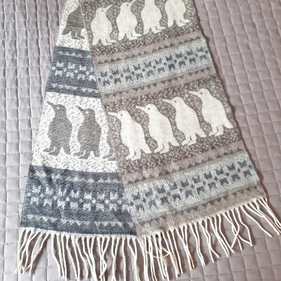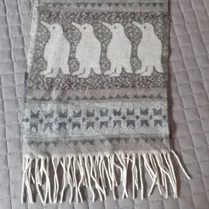 Scarf with fun penguin pattern.